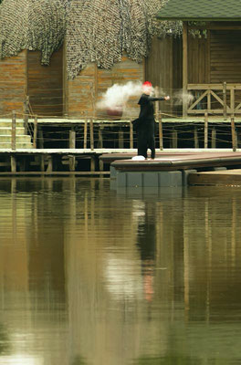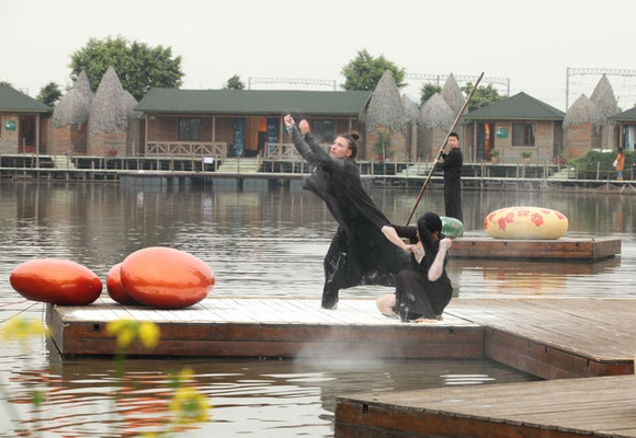 Dafür bedarf es einer Entladung, mal sanft mal zerstörerisch. Die Performance konzentrierte sich auf die Begegnung von Mensch und Ding. Der Impuls der in einem Moment innewohnt dirigierte die Dynamik des Stückes. Das Stück entstand in Zusammenarbeit mit Sylvie Xing Chen und Künstlern aus Guangzhou/China.
